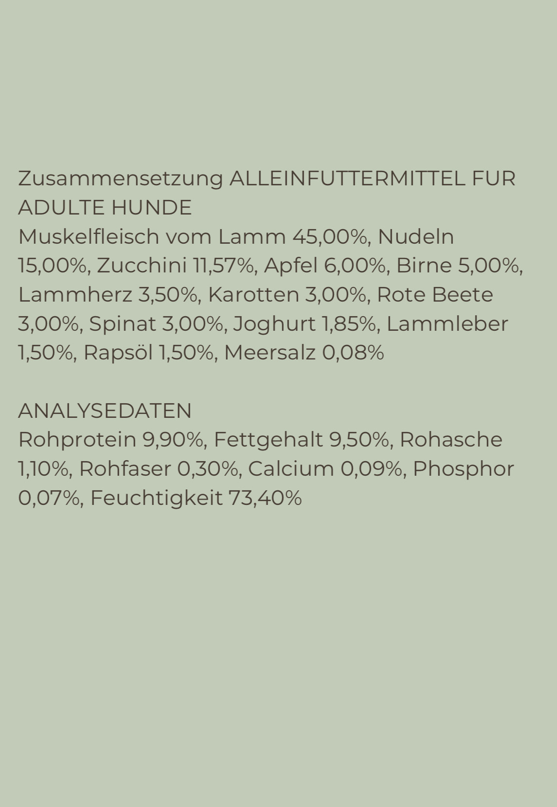 Bitte stelle Deinem Hund immer ausreichend Wasser zur Verfügung. Serviere Deinem Hund das Futter zimmerwarm. Nach dem Öffnen bitte kühl aufbewahren.