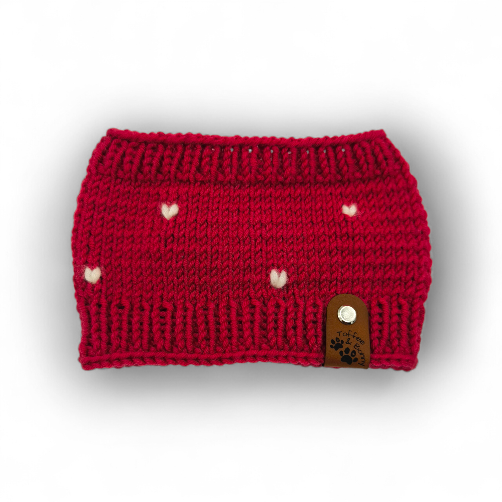 Loop für kleine Hunde, handgefertigt aus 100% Merinowolle (Schurwolle) mit süßem Herzdekor.