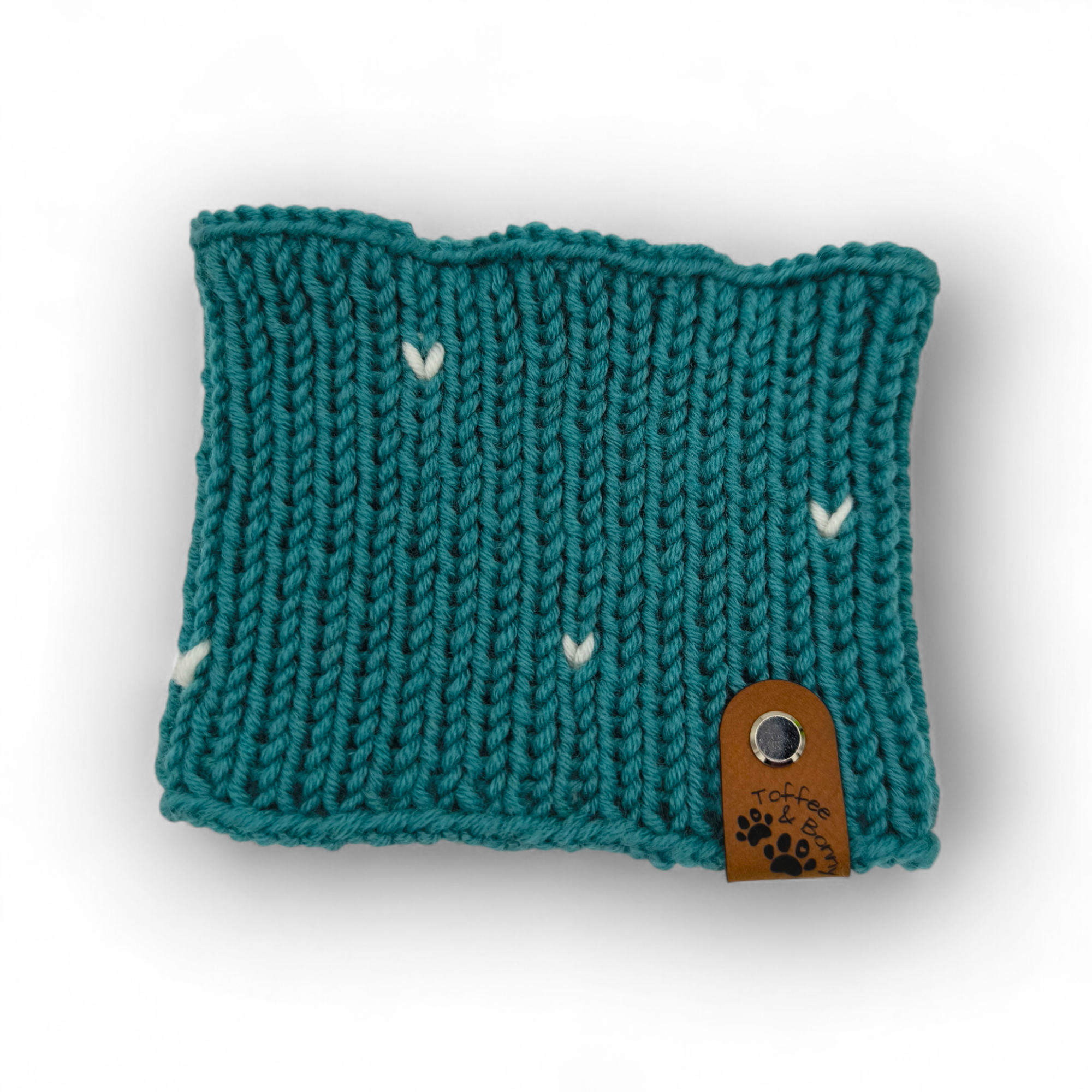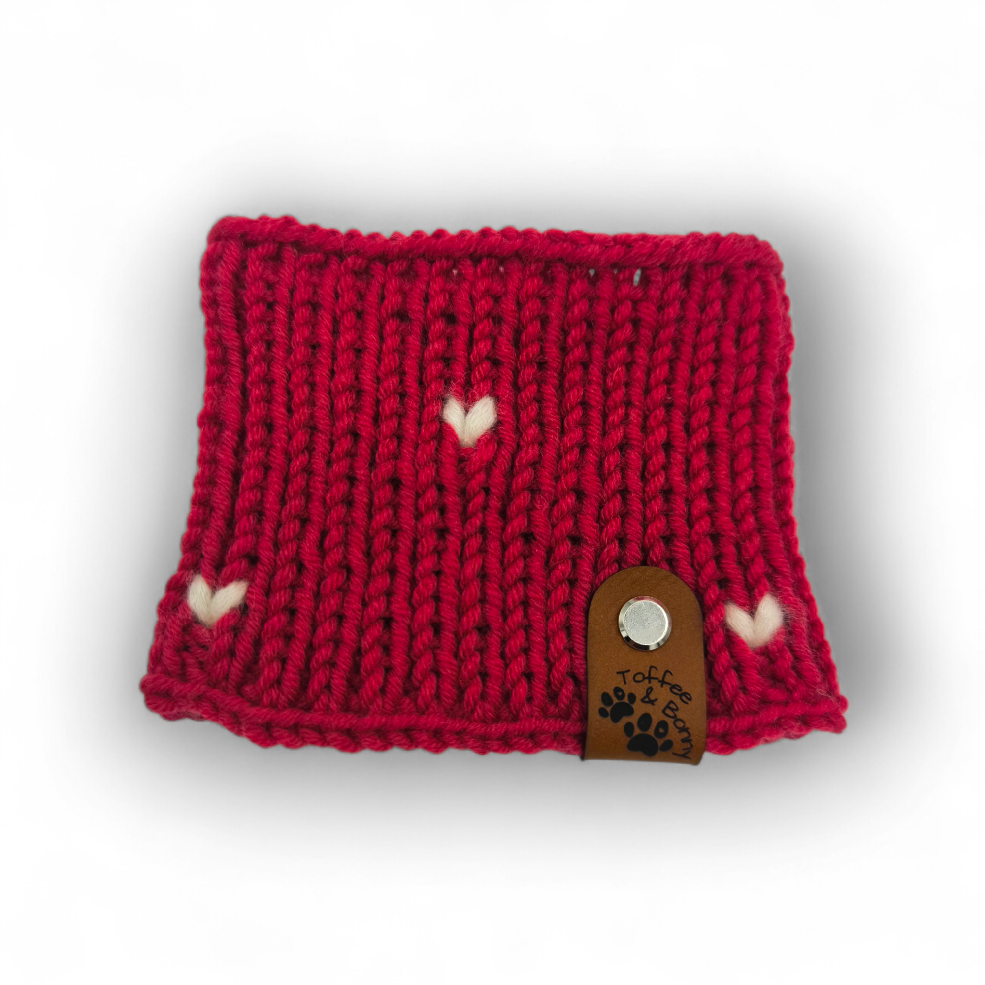 Loop für kleine Hunde, handgefertigt aus 100% Merinowolle (Schurwolle) mit süßem Herzdekor.