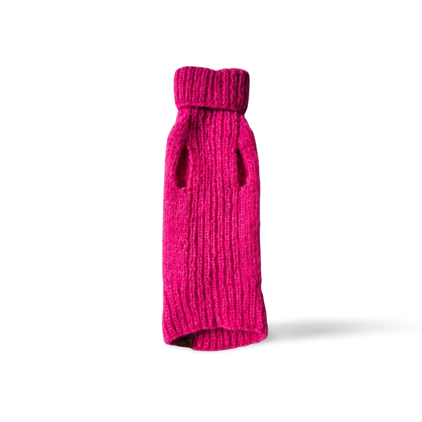 Hochwertiger Hundepullover aus einer super weichen leichten Wolle in knalligem pink mit feinem Glitzereffekt. Außerdem mit einem kuscheligen Rollkragen und einem edlen Zopfmuster auf dem Rücken.